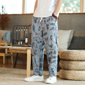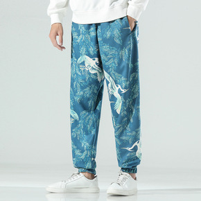 2021年秋季新款裤子男士中国风纯色休闲宽松大码薄...