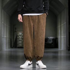 2021新款男士灯芯绒大码束脚休闲裤港风潮牌时尚宽...