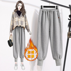 高腰显瘦百搭加绒束脚运动哈伦卫裤女秋冬宽松灰色阔腿...