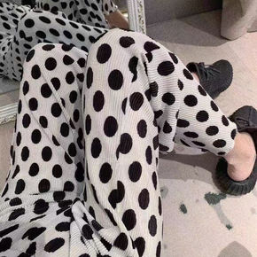 !波点阔腿裤女高腰大码垂感夏季薄款宽松压褶直筒圆点...