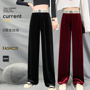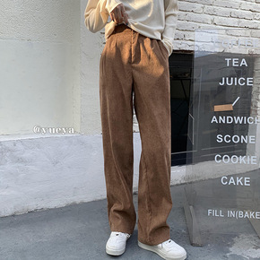 灯芯绒高腰抽绳阔腿裤...