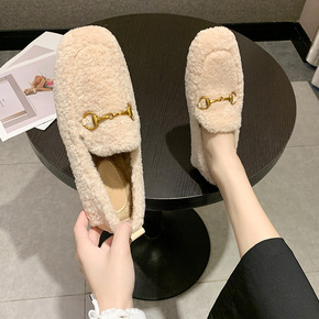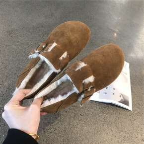保暖穿加绒脚蹬新款2020孕妇女冬外一棉鞋秋毛毛鞋...