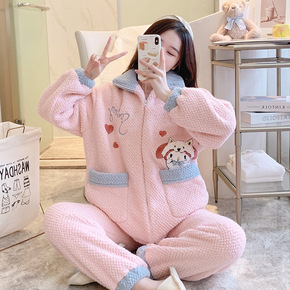 珊瑚绒睡衣女冬季加厚加绒保暖可外穿甜美可爱法兰绒家...
