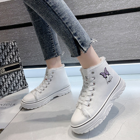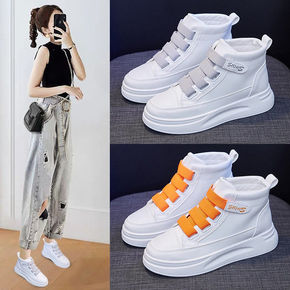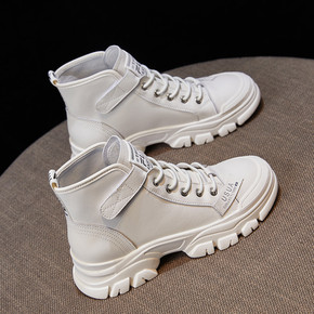 春秋小白短靴2022新款女鞋高帮运动休闲白靴子女马...