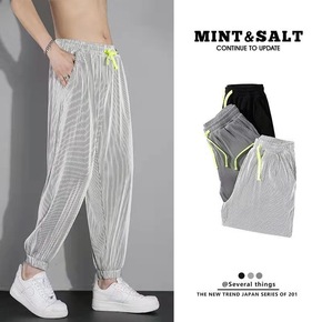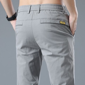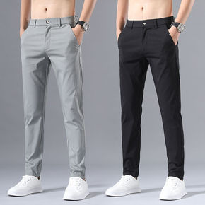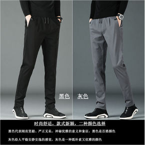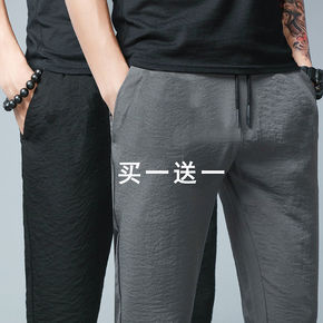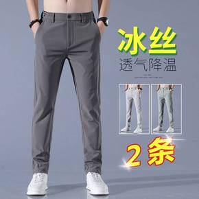 夏季冰丝超薄休闲裤男春夏款松紧腰长裤子直筒修身潮流...
