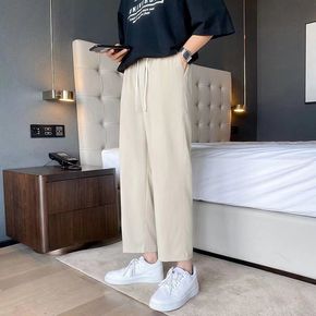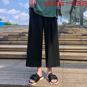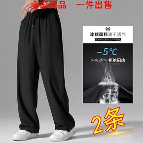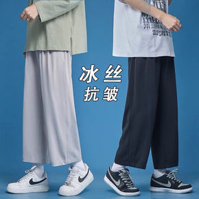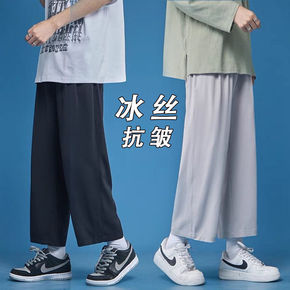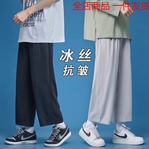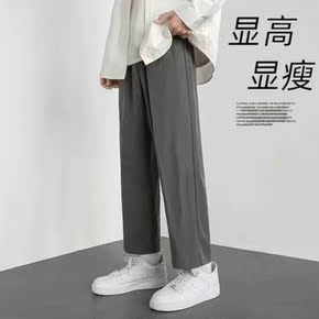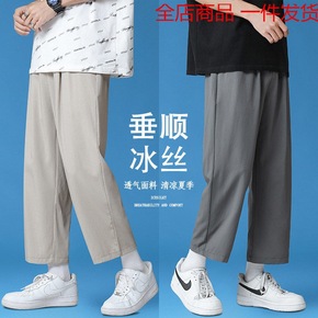 冰丝坠感拖地裤子男夏季薄款休闲九分裤韩版宽松直筒休...