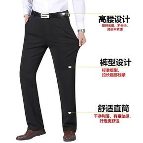 夏款中老年男裤高腰薄款男装裤子中年男士休闲裤宽松直...