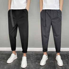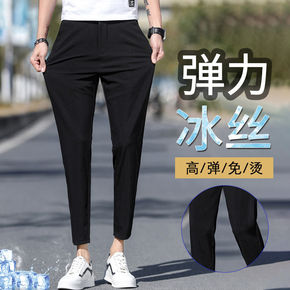 冰丝裤子男夏季薄款西裤男裤春秋款九分休闲长裤宽松束...