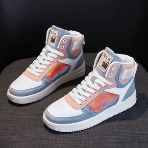 高帮鞋女鞋学生春季高腰运动板鞋2021年新款小白鞋...
