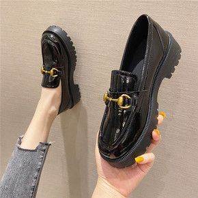 乐福鞋女英伦风2021春季新款厚底马衔扣小皮鞋女复...