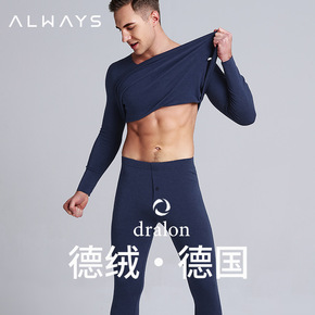 德绒男士套装发热保暖打底衫内衣加绒加厚发热秋冬家居...