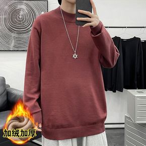 男士毛衣加绒加厚保暖衣内衣上衣半高领打底衫秋冬季针...