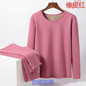新款加绒加厚保暖内衣女士中老年纯色羊羔绒圆领打底保...