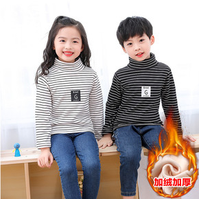 儿童加绒加厚半高领打底衫秋冬新款男童女童毛衣加绒内...