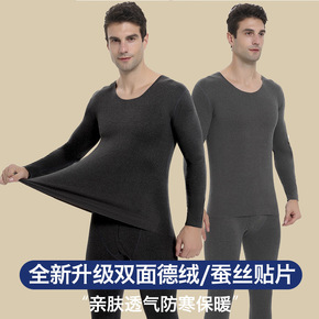 2022圆领蚕丝贴片德绒保暖内衣套装男士冬天秋衣裤...