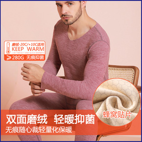 双面德绒保暖内衣 AB面无痕加绒磨毛保暖套装 男女...