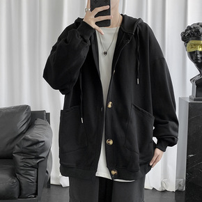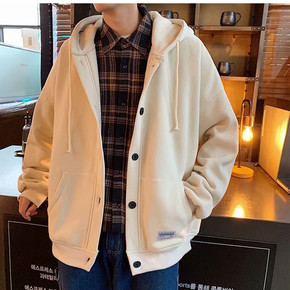 季开衫卫衣男加绒加厚拉链连帽卫衣男士上衣港风宽松情...