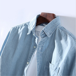 牛仔长袖衬衫男士休闲寸衫薄款春秋季打底衬衣宽松外套...