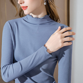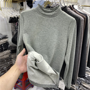 阳离子德绒半高领长袖女秋冬新款百搭修身加绒保暖打底...