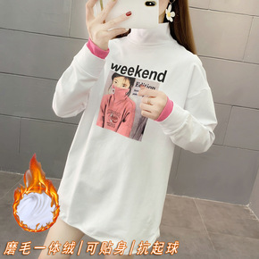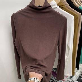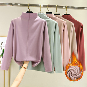 大码莫代尔打底衫女胖秋冬半高领加绒加厚磨毛内搭长袖...