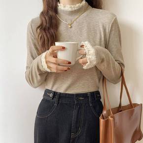 德绒半高领加绒加厚长袖打底衫女2022秋冬新款韩版...