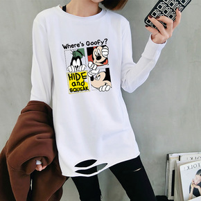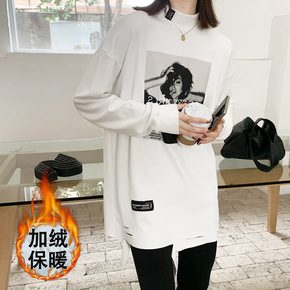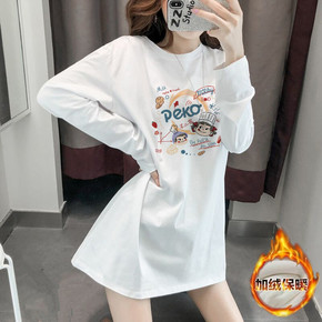白色打底衫女内搭大码秋冬韩版洋气中长款下摆开叉加绒...