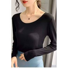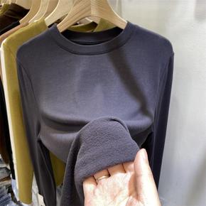 欧货设计感加绒保暖圆领长袖T恤女装秋季新款内搭打底...