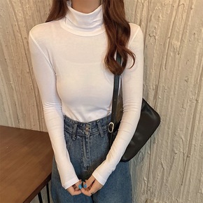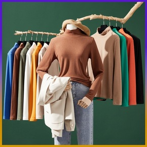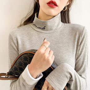 高领打底衫女秋冬季修身内搭恤显瘦大码胖外穿加绒长袖...