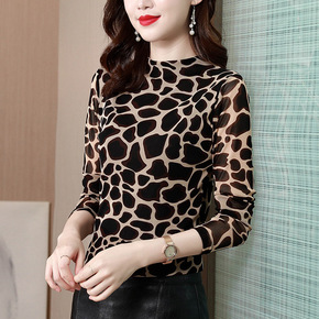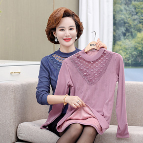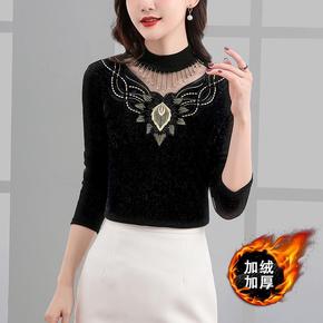 加绒半高领打底衫女秋冬洋气大码中年女装内搭网纱上衣...