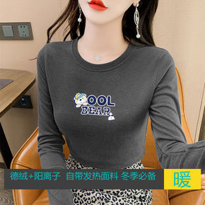 德绒保暖内衣女秋冬加绒加厚长袖打底衫上衣圆领内搭恤...