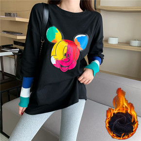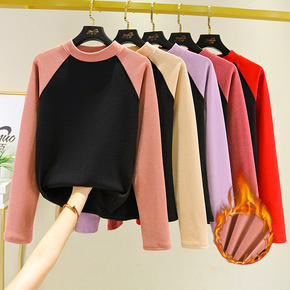 德绒拼接撞色打底衫女内搭圆领保暖恤长袖大码发热加绒...