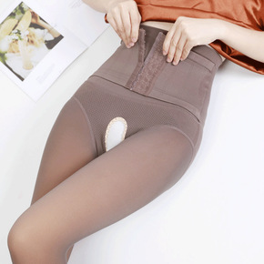 秋冬双层银丝假透肉打底裤 代发丝袜外穿加绒加厚女士...