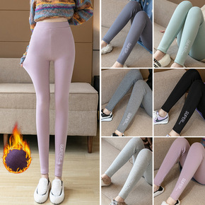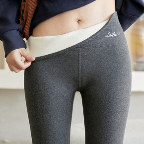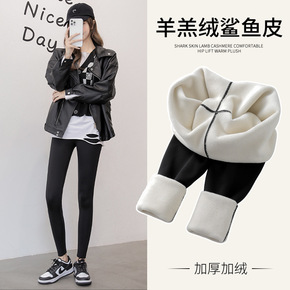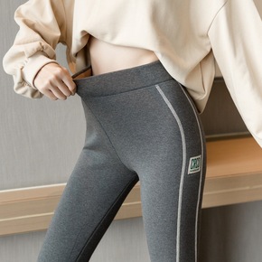 2021秋冬新款显瘦羊羔绒打底裤大码侧边细条纹保暖...
