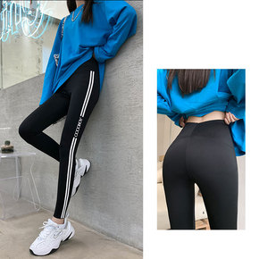 厂家直销侧边条纹运动百搭修身打底裤女弹力外穿铅笔裤...