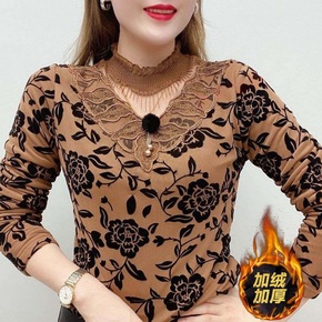 加绒加厚打底衫女冬装2021新款时尚大码女装洋气内...