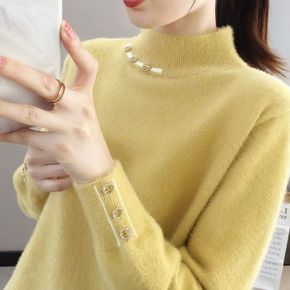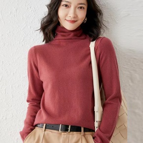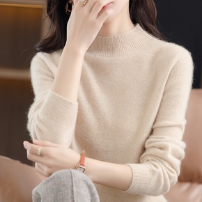2022新款一线成衣纯羊毛衫女是上衣半高领爆款无缝...