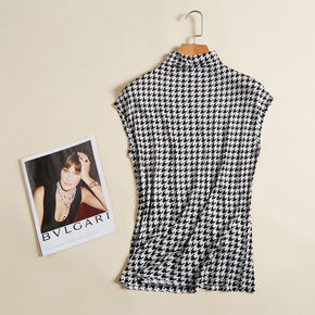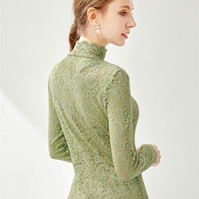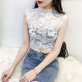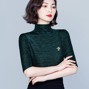 新款五分袖半高领打底衫女内搭网纱洋气上衣亮丝长袖t...
