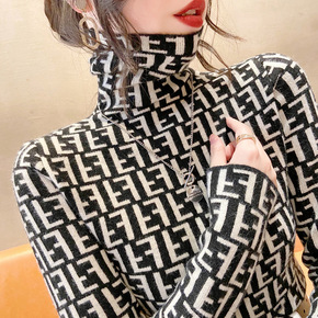 高领打底衫女洋气时尚年新款加厚针织衫修身毛衣内搭...