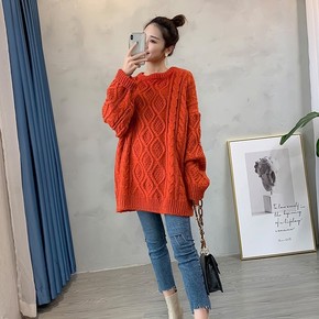 2018春季新款欧美中长款针织开衫蝙蝠袖学院加厚印...