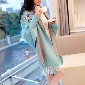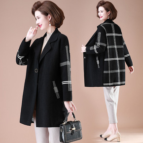 2022秋冬跨境新款花朵刺绣毛衣开衫拼色提花中长款...