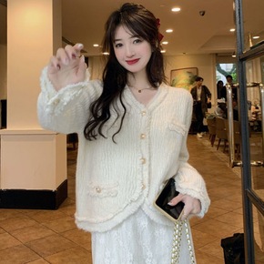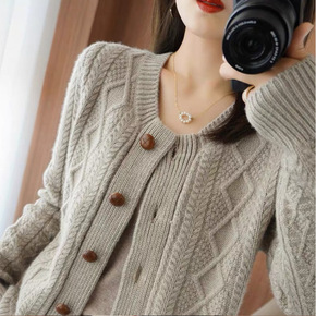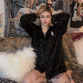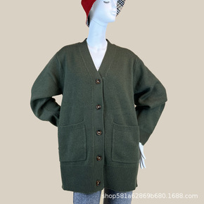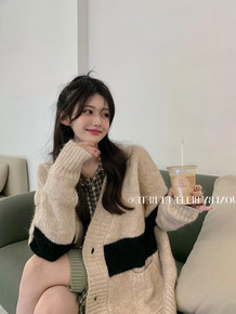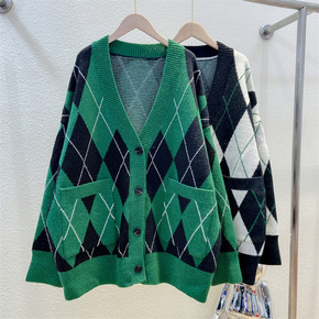 金硕珍明星同款开衫欧美跨境秋冬毛衣外穿休闲宽松小众...