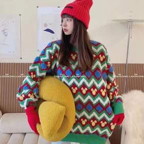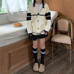 彩虹条纹毛衣开衫女装2021秋冬新款韩版宽松慵懒风...