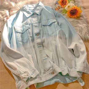 美式高街vintage牛仔夹克外套女春秋宽松复古工...