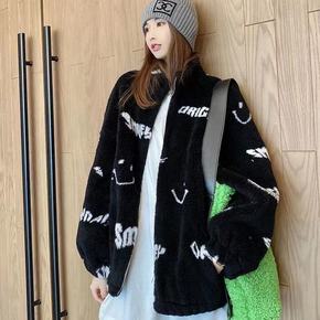 包邮羊羔毛外套女2021年新款冬装韩版宽松两面穿皮...
