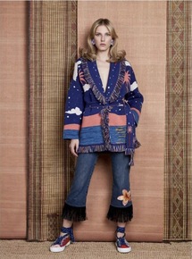JoyingFeng【温柔娇衿】蓝色羊绒毛衣外套女...
