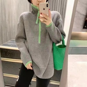高领半拉链套头毛衣女2021秋冬新款简约时尚中长款...