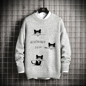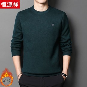 圆领毛衣男士加绒加厚保暖针织衫冬季韩版大码男装内搭...