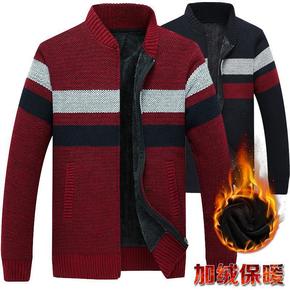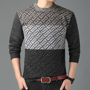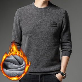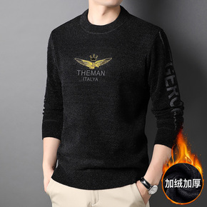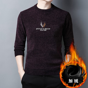 中年男士套头毛衣圆领加绒加厚长袖秋冬新款雪尼尔针织...