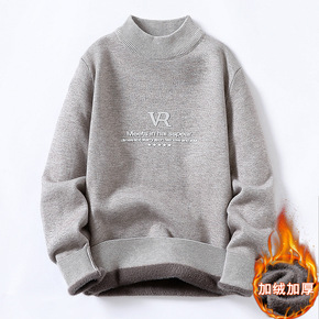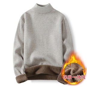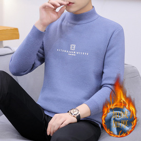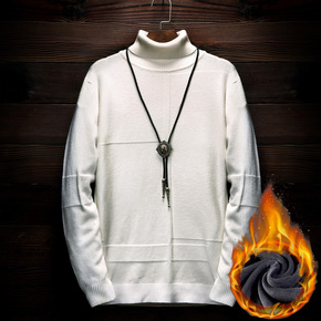 秋冬加绒半高领一体绒毛衣男套头针织衫 韩版纯色精梳...