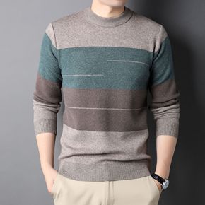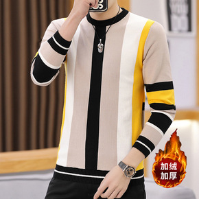 条纹毛衣男2021新款圆领韩版打底衫男士秋冬季内搭...